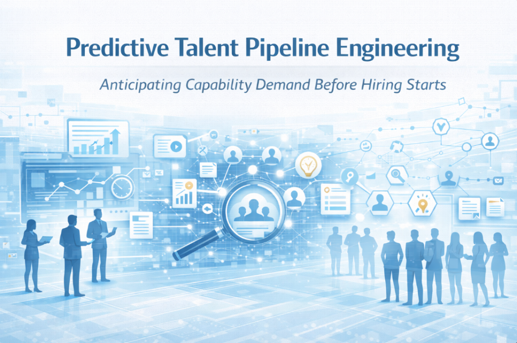 Instead of treating hiring as a fulfillment function, Predictive Talent Pipeline Engineering reframes it as a future-state capability design exercise — combining demand signals, skill adjacencies, learning velocity indicators, redeployment corridors, and market intelligence to architect pipelines before they are urgently required.