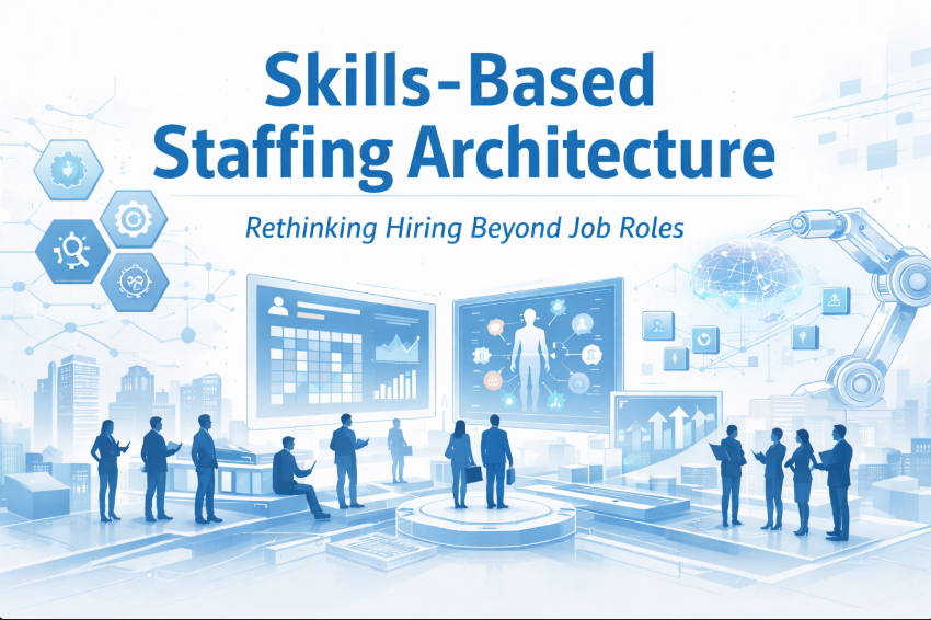 The next wave of enterprise workforce transformation is being driven by Skills-Based Staffing Architecture, where hiring, deployment, and capability mapping shift away from rigid job roles and toward fluid, skills-centric value networks.